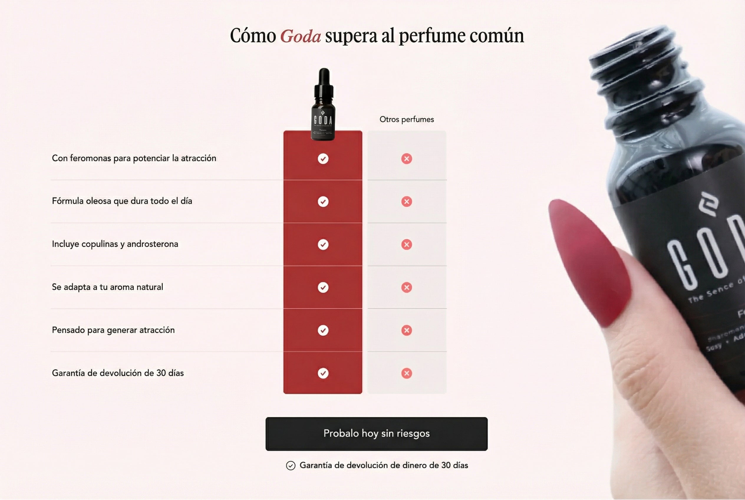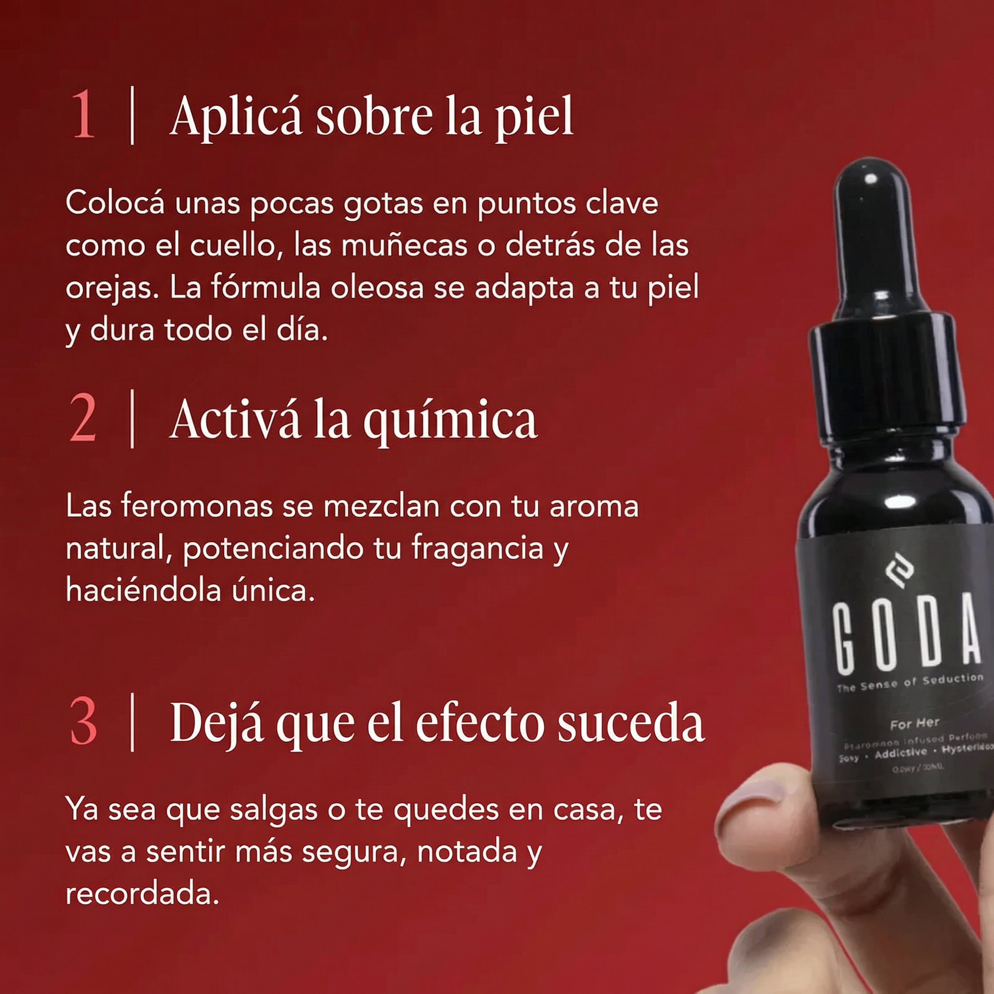 Sí. Goda contiene un compuesto de feromonas como la androsterona, que interactúa con tu química natural y ayuda a potenciar la presencia y el atractivo. Miles de personas ya notaron la diferencia en cómo se sienten y cómo las perciben.